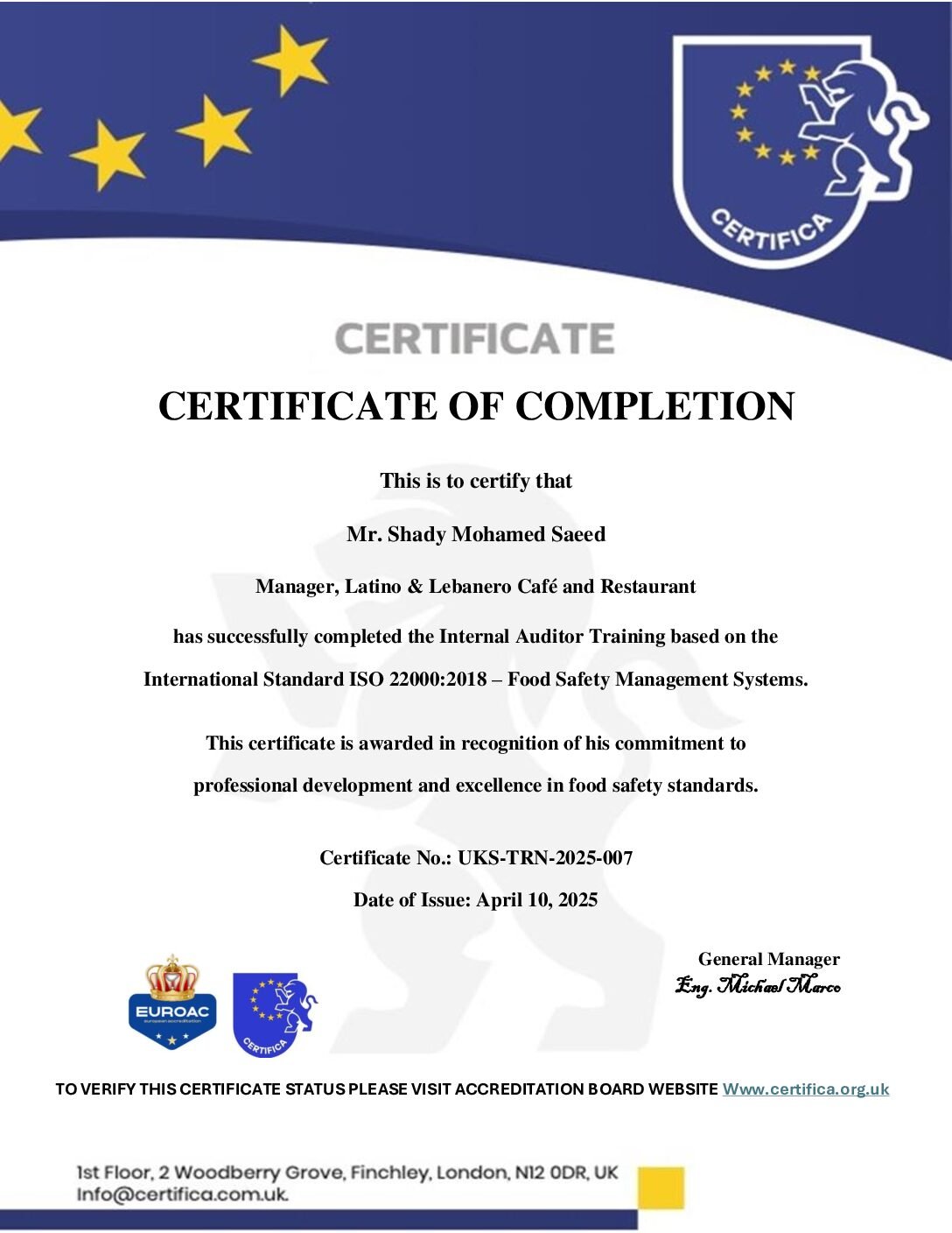 International Standard ISO 22000:2018 – Food Safety Management Systems.Shady Mohamed