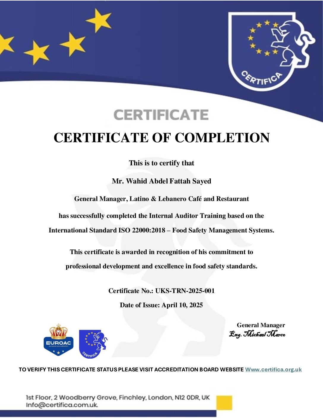 International Standard ISO 22000:2018 – Food Safety Management Systems.WAHID ABDEL FATTAH