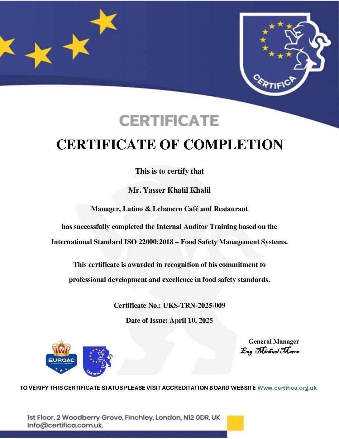 International Standard ISO 22000:2018 – Food Safety Management Systems.Yasser Khalil