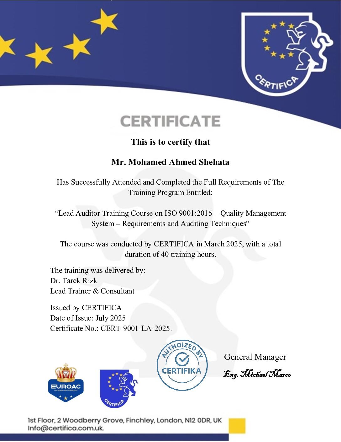 Lead Auditor Training Course on ISO 9001:2015 – Quality Management System – Requirements and Auditing Techniques